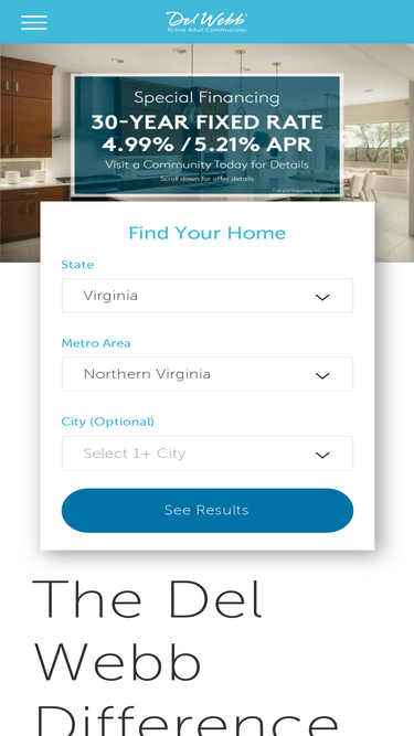 87%find your new home at del webb, the leading builder of active adult communities for those 55 and older.