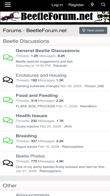 100%BeetleForum.net is a global community for beetle enthusiasts sharing care tips, breeding advice, taxonomy discussions, and field observations. Join fellow hobbyists and experts to explore the fascinating world of beetles.