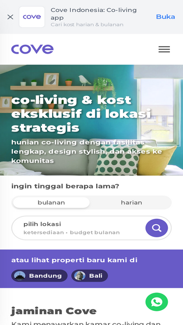 62%hunian di kawasan strategis dengan kontrak yang fleksibel, praktis, dan akses komunitas tak terbatas. temukan kost eksklusif idaman anda bersama cove sekarang juga!