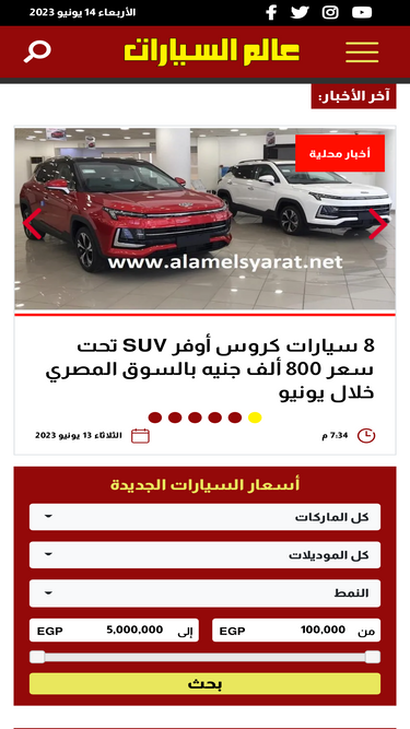 100%كل ما يتعلق بالسيارات من أخبار وموديلات واسعار ومواصفات وقطع غيار وصيانة دورية وسيارا جديدة ومستعملة