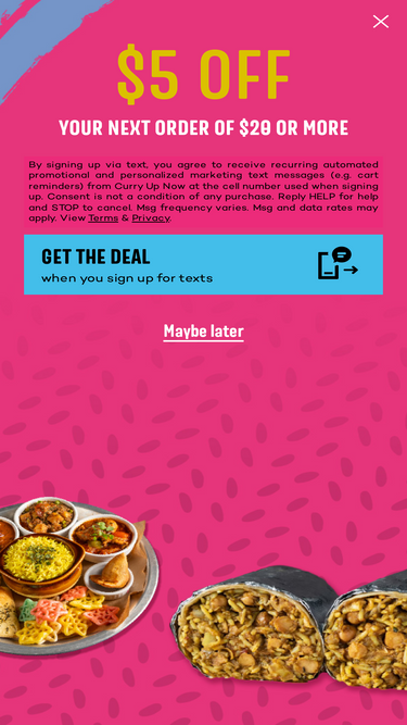 84%Curry Up Now offering Indian street food, in a fast casual setting with restaurants, food trucks, catering services and Mortar & Pestle bar.