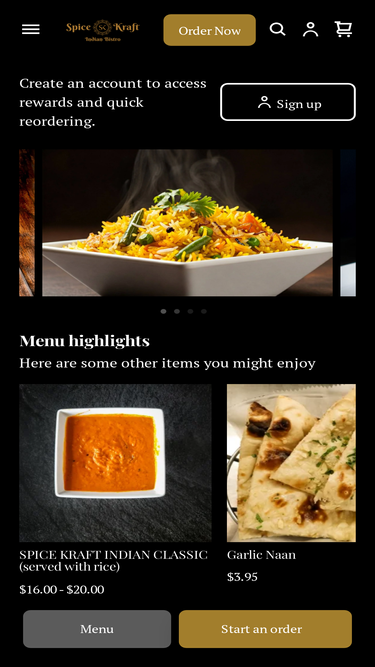 84%Best Indian restaurant serving classic dishes, vegan, gluten-free cocktails, patio seating, chicken tikka masala, and samosa naan at Spice Kraft Indian Bistro