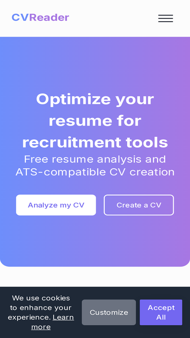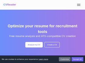 Transform your job applications with CVReader.fr! Our AI parser instantly analyzes your CV and optimizes it for Applicant Tracking Systems (ATS). Boost your visibility to recruiters and get noticed faster.