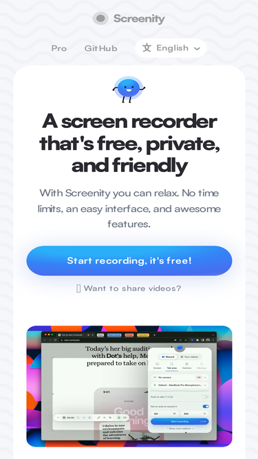 86%Screenity is a screen recorder for Chrome with no limits. Capture, draw, edit videos and more – all with no sign in needed, completely private and open source.