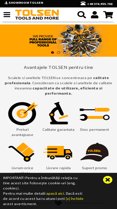 91%importator si distribuitor al marcilor tolsen si joka. indiferent daca esti persoana fizica sau ai un business, la noi gasesti gama completa de scule, unelte, accesorii, consumabile si piese de schimb pentru acestea.