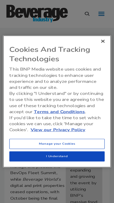 83%At the end of September 2016, Beverage Industry’s parent company BNP Media acquired Beverage World as well as its successful and well-attended BevOps Fleet Summit.
