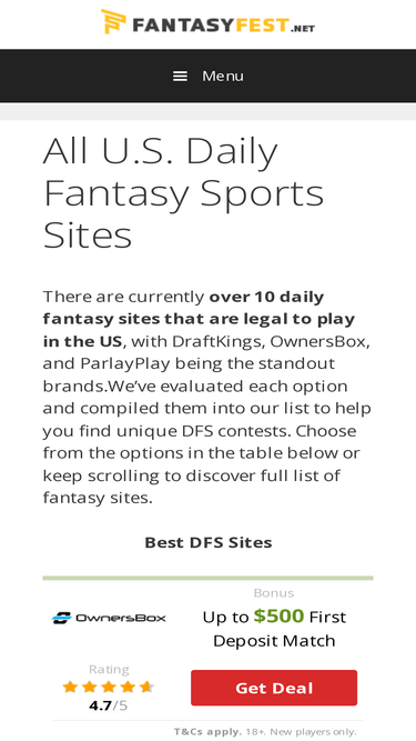 88%find the best daily fantasy sites or app for us players at fantasyfest! stay up to date about the latest promotions and claim new bonus offers!