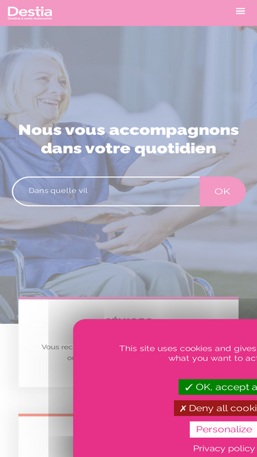 71%Experts du maintien à domicile, les 150 agences Destia vous proposent leurs services d'aide à domicile - 50% crédit d'impôt - DEVIS GRATUIT