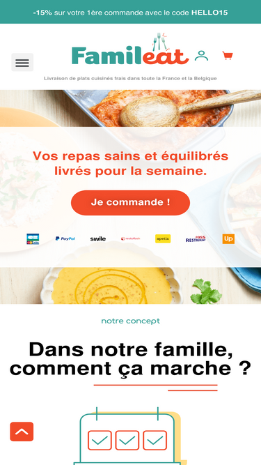 100%Vos menus pour la semaine ! Vos plats préférés frais, sain et de saison, livrés en quantité adaptée à votre besoin, partout en France.
