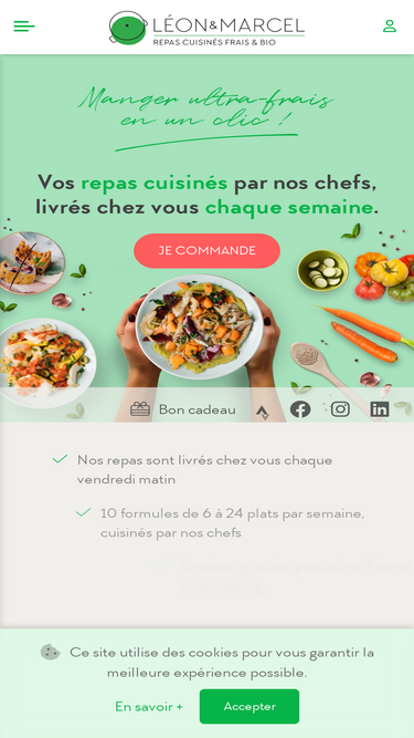 71%mangez ultra-frais en 1 click ! léon & marcel, ce sont de bons plats bio cuisinés par nos chefs et livrés chaque vendredi matin à votre domicile.