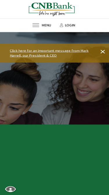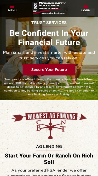 65%a bank should be a trusted financial partner. at community national bank & trust, we’re proud to be that for our customers. opening your first account with us, exploring mortgage loan options, or applying for a credit card is easy.