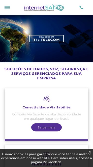 81%Fundada em 2013, a InternetSat é uma operadora de telecomunicações por satélite; fibra óptica; telefonia e serviços gerenciados de TI para o mercado corporativo. Desenhando, implantando e gerindo a solução adequada de acordo com a necessidade de cada cliente.