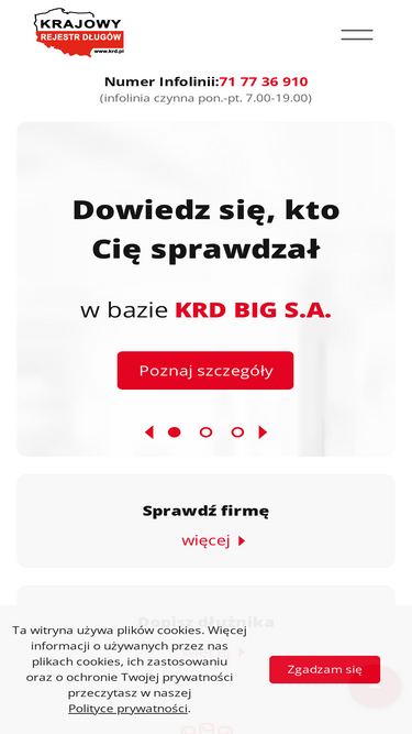 73%sprawdź teraz swojego klienta! zajmuje to 20 sekund. największa baza w polsce. codzienna aktualizacja. baza dostępna 24/7. zawsze aktualne dane. usługi: monitoring własnej firmy, dopisywanie dłużników, sprawdzanie innych firm.