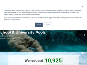 100%Commercial Pools Typical applications include YMCAs, municipalities, athletic, recreational and fitness centers. Large natatorium pools like those used for swimming competition can have a surface area of 10,000 square feet and larger. Waterparks are a newer pool category and are distinguished by their even larger spaces and high water activity. The evaporation rate is generally ... Read more