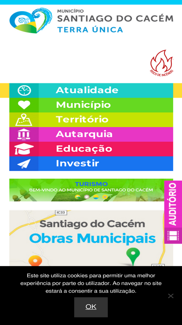 99%Sítio na Internet dos serviços camarários e municipais da Câmara Municipal de Santiago do Cacém. Portal do Turismo, Portal do Munícipe, Produtos da Nossa Terra, Terra de Obra.