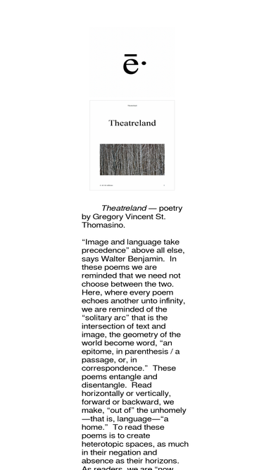 99%eratio publishes poetry in the postmodern idioms with an emphasis on the intransitive. eratio is edited by gregory vincent st. thomasino.
