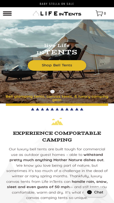 73%Browse bell tents online at Life InTents. Our collection of luxury canvas tents are made of the most durable canvas on the market, making them the perfect tents for glamping. Order one of our luxury glamping tents online at Life InTents today.