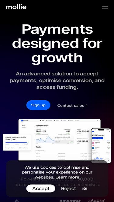63%Start growing your business with Mollie Payments, for online and in-person payments: ✓ Quick setup ✓ Honest pricing ✓ All leading payment methods. Start today »