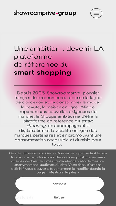 92%Le Groupe Showroomprivé est un acteur majeur de la vente en ligne mode et beauté. Composé de 6 entités aux expertises complémentaires, il compte 22 millions de clients et plus de 2000 marques partenaires.