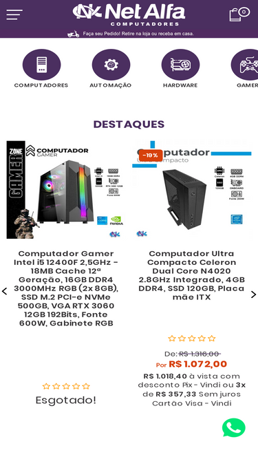 Desde 2000, localizada na cidade de Bauru (SP), a Net Alfa computadores oferece solu��es em tecnologia da informa��o, por meio da comercializa��o de produtos de inform�tica e excel�ncia na presta��o de servi�os.