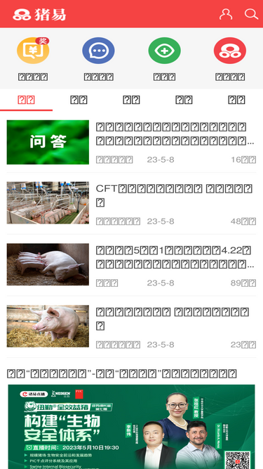 83%猪易网是集养猪财经、技术、生猪价格行情、猪病问答、社区论坛、畜牧商城为一体,涵盖种猪、兽药、器械、饲料的养猪行业综合门户网站,成立于2000年,致力为养猪人服务。我们的宗旨是:让养猪更简单,更高效,更快乐。