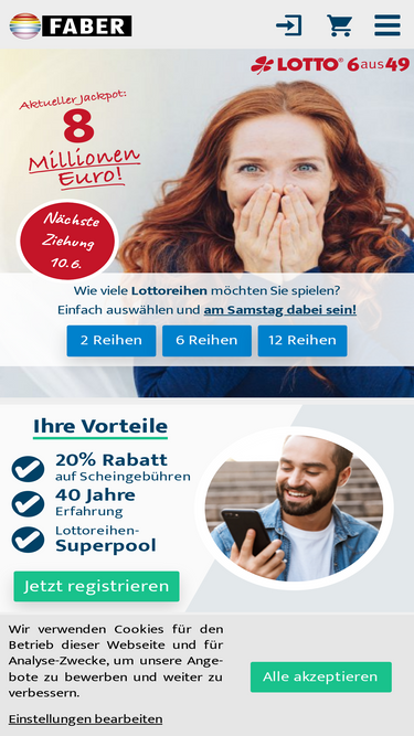 70%Seit über 45 Jahren. Online Lotto spielen bei Faber. Einfach, günstig und sicher nehmen Sie bei uns am deutschen Lotto teil. Als Partner staatlicher Lottogesellschaften können Sie sich auf uns verlassen!