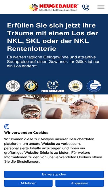 70%sei schlauer - gewinn mit neugebauer. das große glück erwartet sie bei der nkl neugebauer mit geld- und sachpreisen im wert von mehr als 1,2 milliarden €.