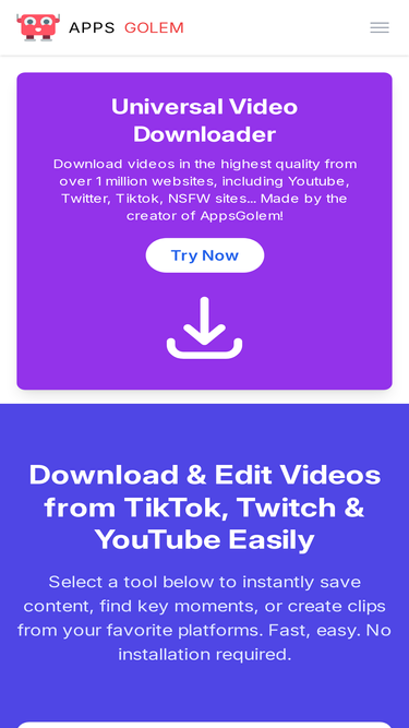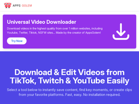 83%AppsGolem offers video downloads from TikTok, Twitch, YouTube most replayed moments and YouTube video trimming services.