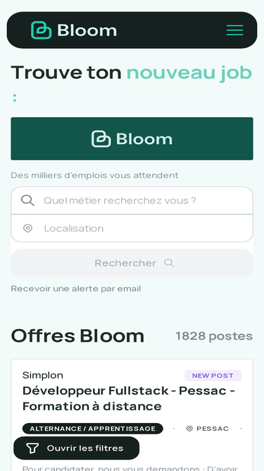 87%Bloom transforme l’emploi en alternance en connectant les étudiants, les écoles et les entreprises. Transformez votre parcours dès maintenant.
