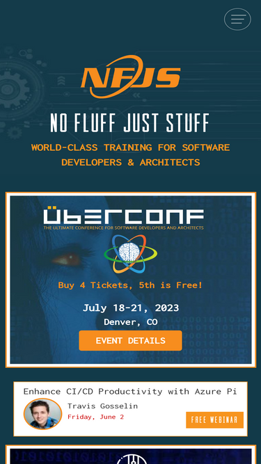 75%no fluff just stuff is an educational event series for software developers and architects.