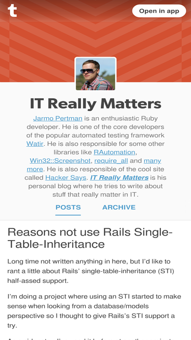 74%jarmo pertman is an enthusiastic ruby developer. he is one of the core developers of the popular automated testing framework watir. he is also responsible for some other libraries like rautomation,...