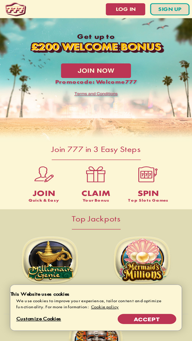 99%Play the most exciting online casino games at 777 - wide selection of slots, jackpots, Roulette, Blackjack and live casino & a Welcome Bonus. (T&C's Apply)