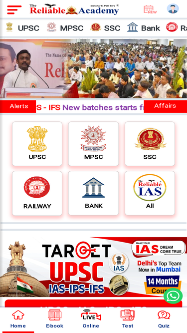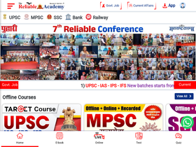 74%Reliable Academy is best coaching classes for UPSC, MPSC, Bank, SSC, Railway, Insurance, Defence, PSU & Ministry Govt. Exams Preparations. Also provides career guidance to students.