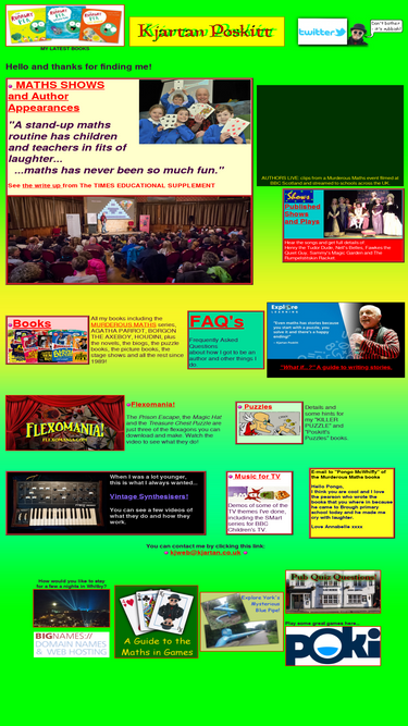 76%kjartan's murderous maths shows, books, plays, musicals, author visits and hints to the killer puzzles.
