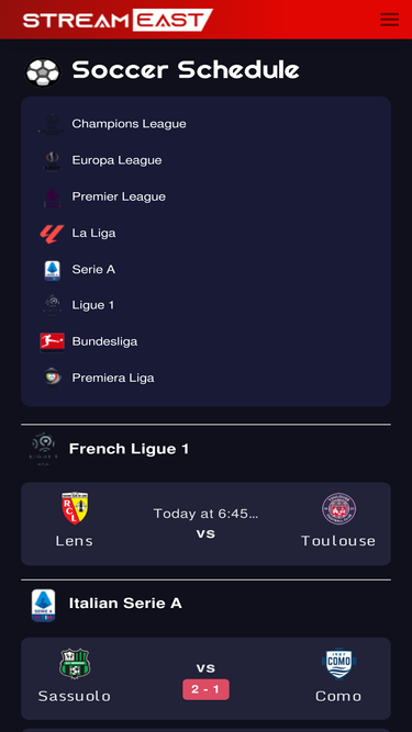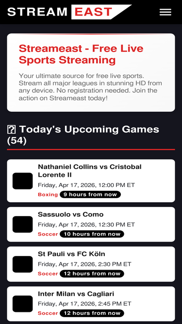 StreamEast delivers free HD live sports. Watch NBA, NFL, NHL, MLB, UFC, Soccer, MMA, and football streams online — no sign-up required Just watch every streams in HD for free.