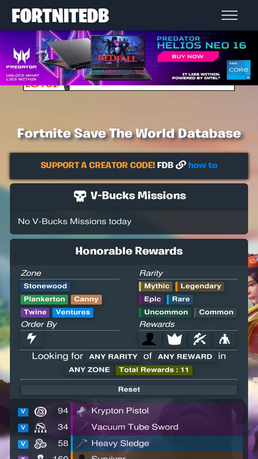 FortniteDB is an unofficial Fortnite Save the World Database. Discover v-bucks, schematics, heroes, survivors, defenders, weapons, and more.