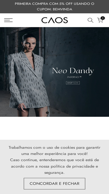 87%Ícone de modernidade e poder feminino, os looks CAOS inspiram atitude através de peças sofisticadas e icônicas. Conheça agora a nossa e-store!