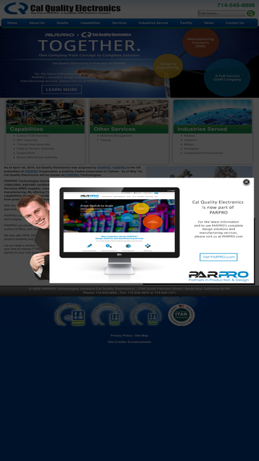 100%cal quality electronics (now part of parpro) is one of southern california’s leading contract manufacturers for pcb assemblies & related products. contact us today for more information.