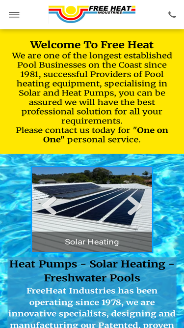 78%Freeheat, a pool heating company specializing in Solar & Heat Pumps since 1978. Expert advice on pool heating solutions. Serving the Coast since 1981. Call for personalized service.