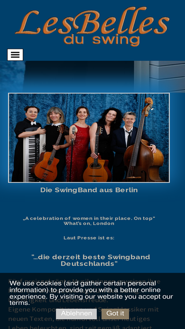 56%professionelle, niveauvolle unterhaltungsmusik, tanzmusik von jazz bis pop aus berlin. für dinner, hochzeit, veranstaltungen, feiern, events aller art! amerikanischer, deutscher swing, bossa nova, samba, pop, disco, tonfilmschlager. musik der 20er, 30er, 40er, 50er, 60er jahre im duo, trio, quartett und tanzorchester mit sängerin aus berlin!