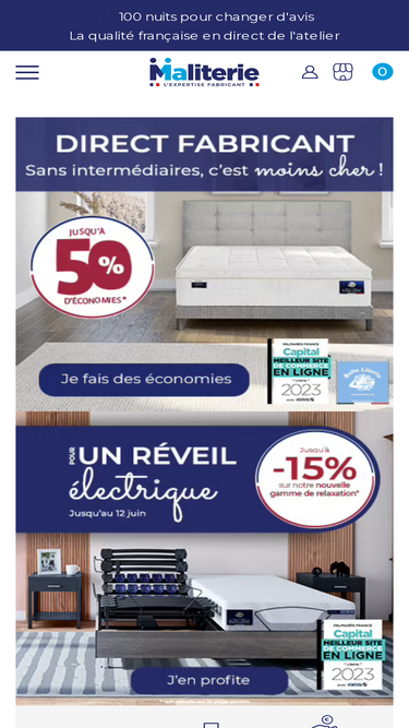 80%Chez Maliterie.com, vous ne payez pas la marge des intermédiaire car il n'y en a pas ! Vous profitez ainsi d'une literie de qualité au meilleur prix et d'un savoir faire de plus de 75 ans