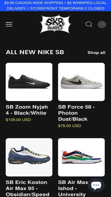 96%Sk8 Skates is one of the longest standing skateboard shops in Canada. The store has been locally-owned by skaters, in Winnipeg, since 1987. Featuring the best skateboards, snowboards, Nike SB, Carhartt WIP, Dime & Vans.