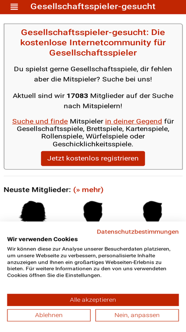 97%www.gesellschaftsspieler-gesucht.de - treffe dich hier mit anderen spielern, um gemeinsam termine für brettspiele, kartenspiele und würfelspiele zu finden.