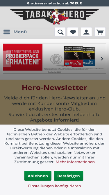 78%Erfahren Sie alles über Versand und Zahlungsoptionen bei Tabakhero. Vertrauen Sie dem Fachhändler für Tabakprodukte. Besuchen Sie uns online!
