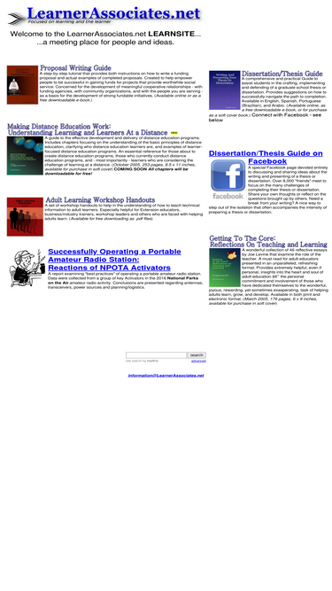 85%a meeting place for people, ideas, and strategies. featuring a variety of creative publications and learning systems designed to encourage learning. included is dialogtime, teaching at a distance workshop, guide for writing a funding proposal, thesis/dissertation writing guide - and others.