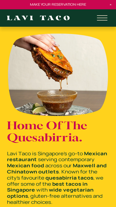 97%Tucked away in a former police barracks at Pearl’s Hill Terrace, Lavi Taco Chinatown is a rustic-chic Mexican taqueria serving bold, contemporary flavours inspired by street food cultures from around the world. Set in the heart of Chinatown, the space comes alive with creative twists on Mexican clas