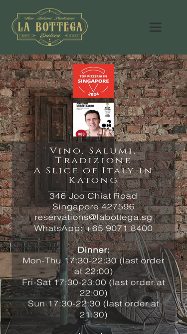 100%La Bottega Enoteca. Awarded Italian restaurant and Pizzeria in Katong, Joo Chiat.