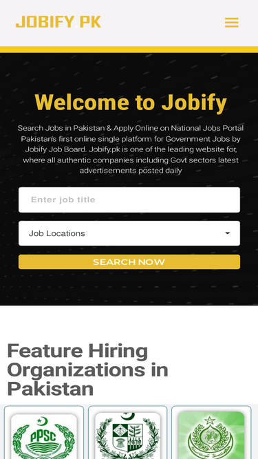 93%Highest Paying Jobs, Resumes, & Career Insights Get detailed salary information, career development insights, and stay updated with the newest government and private sector jobs in Pakistan. Keyword Search Now Search Jobify.pk for top paying jobs in Pakistan, including in-depth Govt jobs listings, authentic opportunities, and informative career tips for male and female job seekers. Learn the newest government and private sector job information, salary details, download YouTube videos critical career development information. Get answers