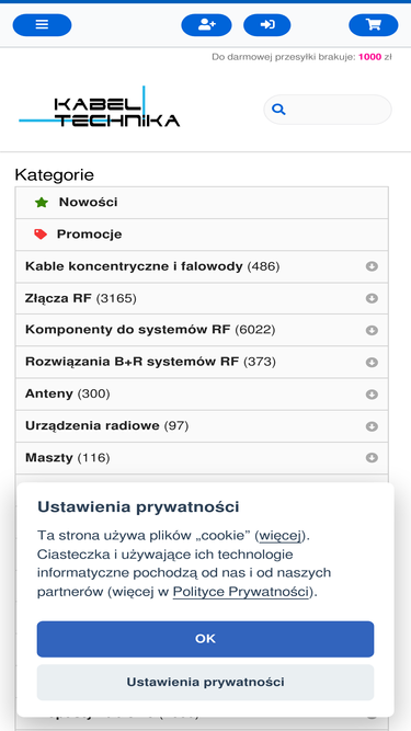 ω zobacz produkty dla przemysłu, telekomunikacji, nauki i wojska: kable koncentryczne, transmisyjne i energetyczne, złącza (wtyki, gniazda), komponenty rf, adaptory, odgromniki, tłumiki, światłowody i akcesoria do nich, patchcordy rj45, skrętka utp i ftp. w ofercie: telegartner, belden, andrew, solarix, roxtec, mini-circuits, kathrein, technokabel, hus-tsan.