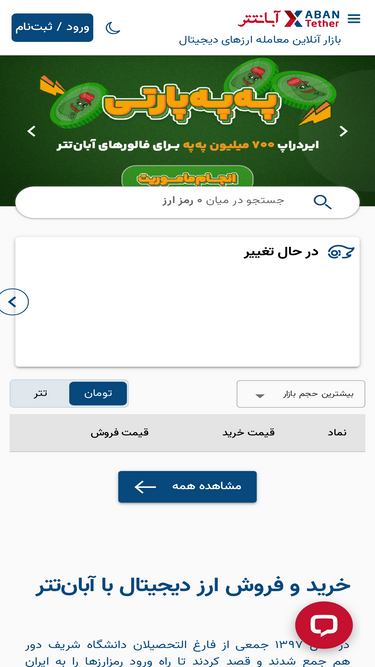 89%در صرافی ارز دیجیتال آبان تتر میتوانید خرید و فروش بیش از ۱۰۰۰ ارز دیجیتال مختلف را بصورت امن و سریع با پشتیبانی 24 ساعته انجام دهید. برای خرید و فروش کلیک کنید.